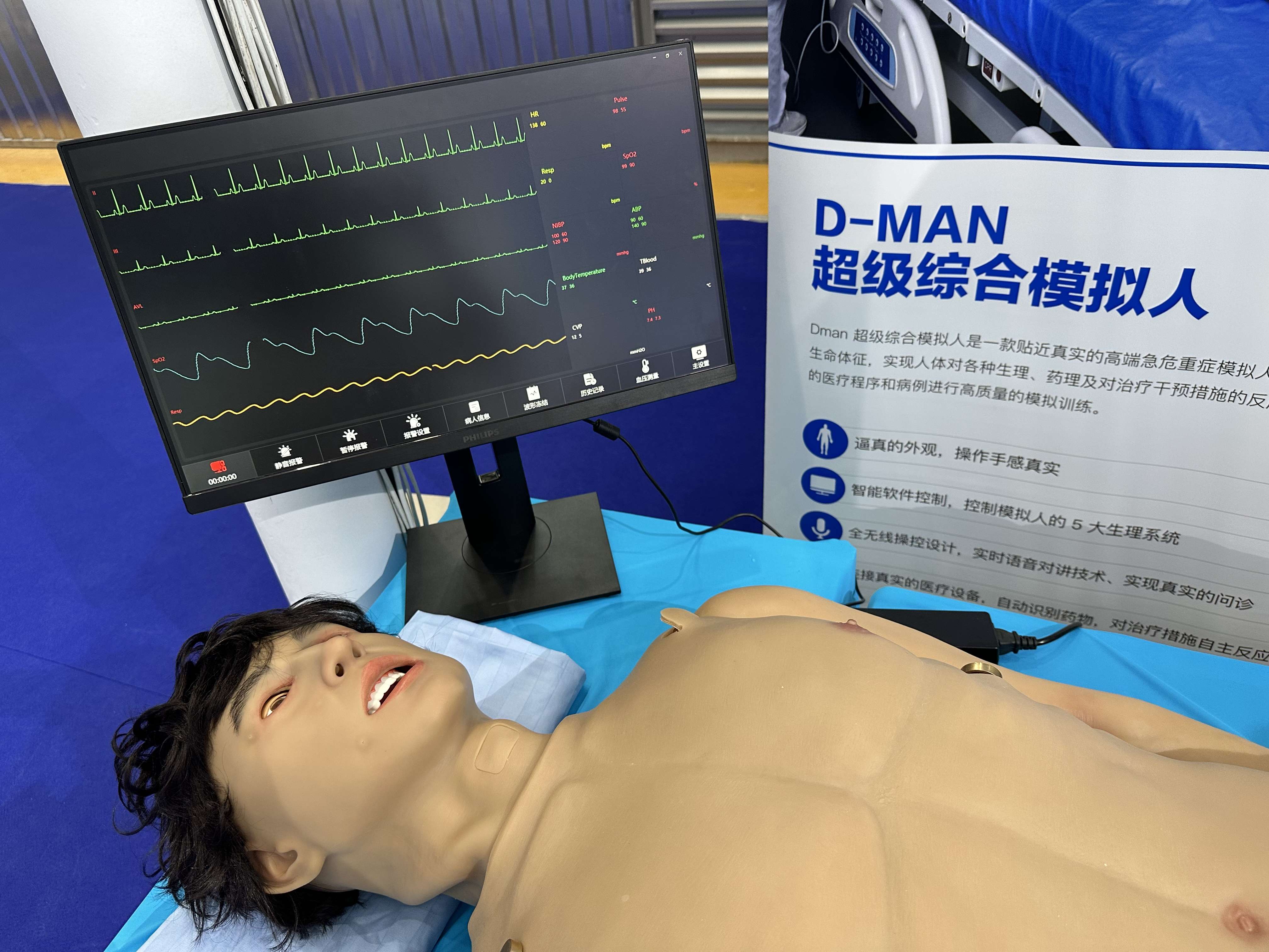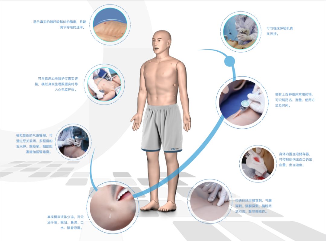 DMAN 超级综合模拟人是本公司历经 3 年自主研发、贴近真实的高端急危重症模拟人。医博士研发团队在吸收国内外先进技术的基础上,结合自身的技术优势进行全方位研发,多项技术在领域内达到先进水平,并已申请多项国家发明专利。