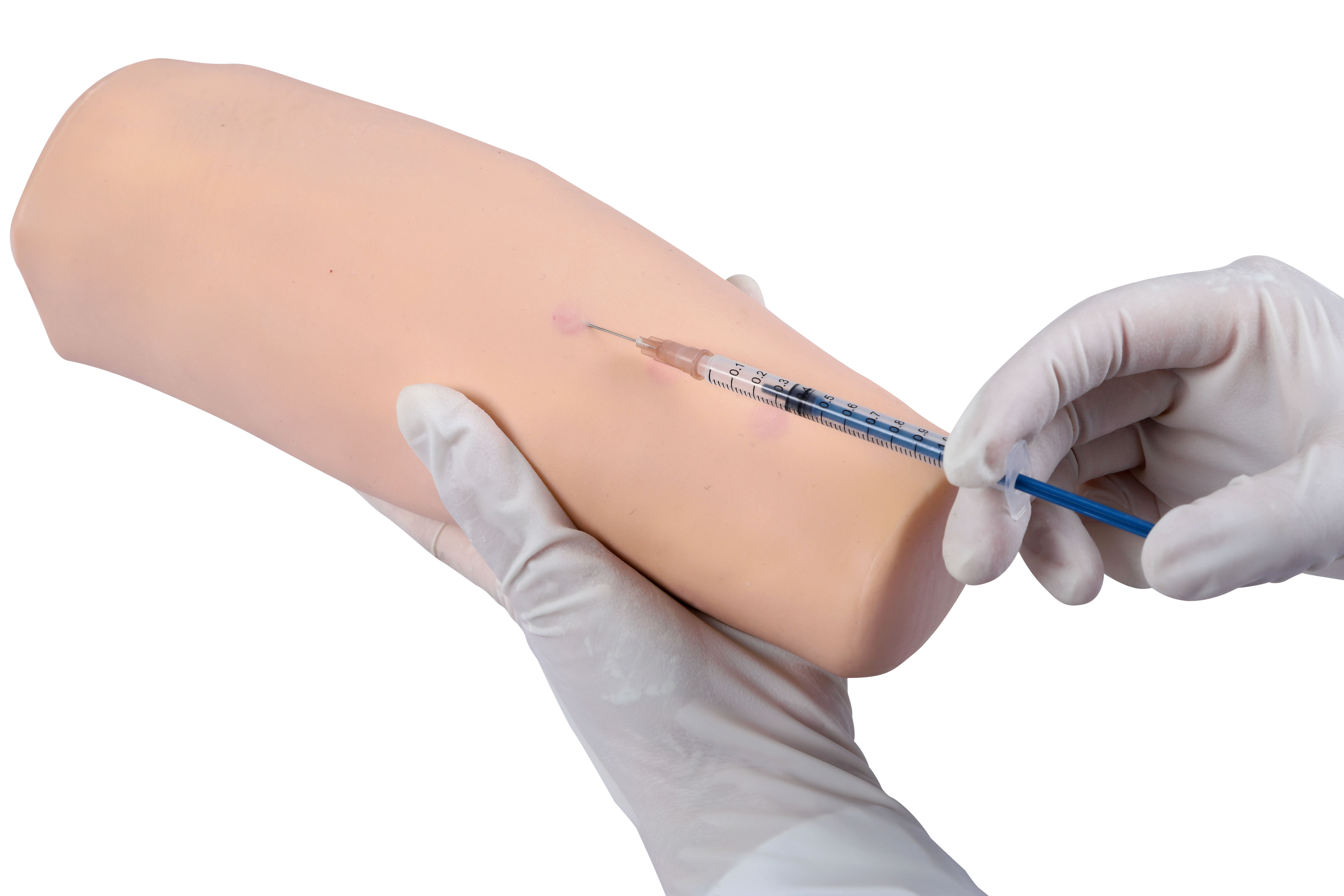 1. 模型为完整的前臂,设多个皮内注射点。